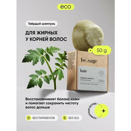 Балансирующий твердый шампунь tomato от бренда «be.sage» - хороший выбор для ухода за склонными к жирности и жирными волосами Полностью натуральная питательная формула содержит 100% активных ингредиентов, среди которых комплекс экстрактов розмарина и плюща, витамины и аминокислоты. Также в составе хлорофилло-каротиновая паста, которая эффективно очищает кожу головы и регулирует работу сальных желез, обеспечивая свежесть причёски даже спустя несколько дней после мытья головы. Уходовый косметический продукт деликатно очищает локоны и кожу головы. Он обладает увлажняющим и восстанавливающим действием. Средство понравится взрослым женщинам и мужчинам, девушкам и юношам — подросткам. Оно имеет pH 5.0-6.0 и подходит для ежедневного использования. Натуральная формула укрепляет волосяные луковицы, предотвращая выпадение волос. Органический состав без консервантов, SLS и парабенов не утяжеляет локоны, делая их объемными, блестящими и красивыми. Он способствует бережной очистке и укреплению волос. Это хороший выбор для мытья головы от жирных корней. Шампунь в твердом формате удобно брать с собой в путешествия и командировки или на тренировки. Он обеспечит глубокое увлажнение и питание волос и кожи головы. Благодаря отсутствию воды в составе средство долго хранится и не содержит вредных компонентов. Продукт, созданный профессиональными косметологами, подходит для ухода за всеми типами мужских и женских волос. Он хорошо очищает густые и тонкие, непослушные и склонные к пушистости локоны.