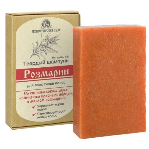Твердый натуральный шампунь для мытья нормальных и сухих волос. Изготовлен из растительных масел. Обогащен свежевыжатым соком лука, экстрактом красного перца и эфирным маслом розмарина. Ярко-оранжевого цвета с белыми вкраплениями и приятным растительным запахом. Сок лука – известное высокоэффективное средство от выпадения волос. В народе его называют реаниматором волос. Когда волосы безнадёжно испорчены окрашиванием и химической завивкой именно сок лука поможет им восстановиться и нормально расти. Красный перец – второе действенное средство, чтобы заставить волосы расти быстрее. Еще наши бабушки знали рецепт масок и бальзамов для волос на основе красного перца. Так почему же не воспользоваться этими знаниями сейчас? Наконец, эфирное масло розмарина. Оно отлично влияет на рост волос, делает цвет волос более сочным, насыщенным, помогает избавиться от перхоти. Что надо знать при использовании твердых шампуней:1. После применения шампуня хорошо промойте вымытые волосы теплой проточной водой.2. По возможности используйте для мытья волос мягкую или умягченную воду. Помните, чем мягче вода, тем лучше вымываются волосы.3. Состояние вымытых волос можно дополнительно улучшить, если сполоснуть вымытые волосы водой с добавленным в нее лимонным соком, яблочным или столовым уксусом из расчета 1 столовая ложка сока (уксуса) на 1 л воды.4. Не смывайте твердыми шампунями лак для волос, масляные маски и бальзамы, содержащие воска и силиконы. Они с этим типом загрязнений волос не справятся.5. При использовании твердых шампуней может возникнуть эффект перенасыщения волос маслами. Во избежание этого раз в 2 недели помойте волосы жидким шампунем, подходящим для вашего типа волос.6. Избегайте попадания пены в глаза. При попадании тщательно промойте глаза теплой водой.7. После использования храните шампунь на хорошо проветриваемой мыльнице. Ограничения по применению: повышенная чувствительность и аллергические реакции на растительные компоненты мыла.