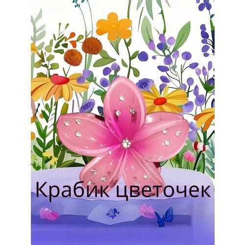 НАЙТИ ВЫГОДНЕЕ - Крабик для волос идея Цветок, с камушками, розовый, прочный пластик, 1 шт