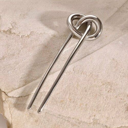 Шпилька имеет прямые линии и форму невидимки, что позволяет надежно закрепить волосы и не вызывать дискомфорта при носке. Длина аксессуара составляет 10 см, что делает его удобным для использования на волосах разной длины.