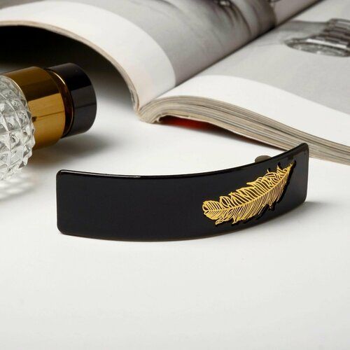 Заколка выполнена в форме прямоугольника с пером, что придает ей оригинальность и изящество. Длина аксессуара составляет 10,5 см, что позволяет надежно закрепить волосы и не причинить им вреда.