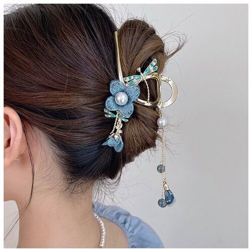 НАЙТИ ВЫГОДНЕЕ - Заколка краб для волос WSB872 металлическая цветок с подвеской