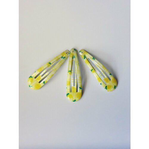 НАЙТИ ВЫГОДНЕЕ - Заколка клик-клак многоцветная аксессуар для укладки волос желтый лимон на белом