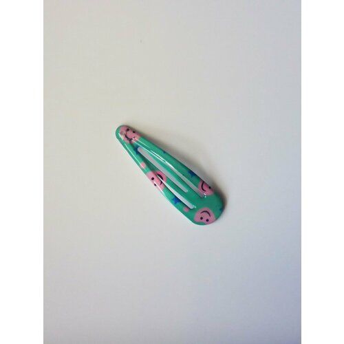 НАЙТИ ВЫГОДНЕЕ - Заколка клик-клак многоцветная аксессуар для укладки волос розовые смайлики улыбка на зеленом
