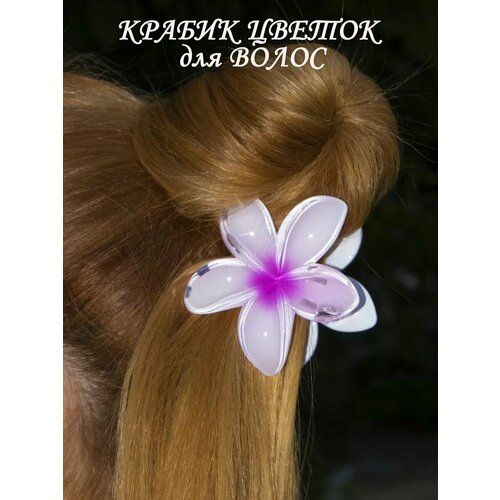 НАЙТИ ВЫГОДНЕЕ - Заколка Крабик, женская, гавайский цветок, белый лиловый цвет, длина 8 см
