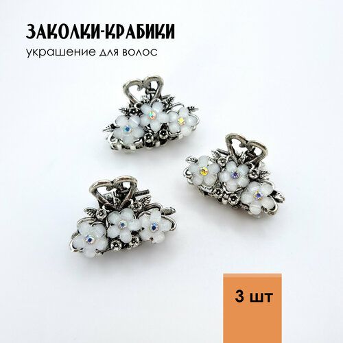 НАЙТИ ВЫГОДНЕЕ - Заколки крабики со стразами маленькие Цветочки, украшение для волос, для девочек. 3 шт, белые