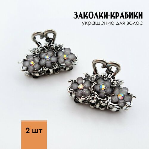 НАЙТИ ВЫГОДНЕЕ - Заколки крабики со стразами маленькие Цветочки, украшение для волос, для девочек. 2 шт, тёмно-серые