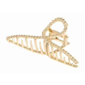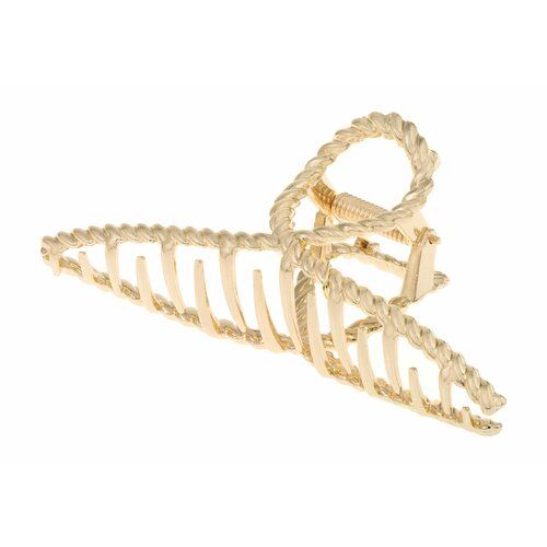 Большой металлический краб золотого цвета станет незаменимым аксессуаром на каждый день. Изготовлен из облегченного металла и имеет крепкую пружину, поэтому держит волосы любой густоты. Длина: 11 см