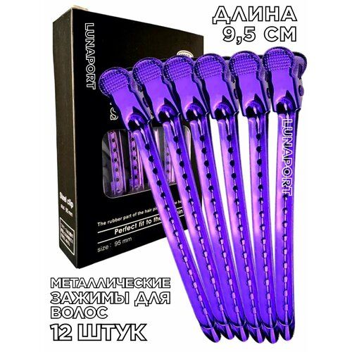 НАЙТИ ВЫГОДНЕЕ - Парикмахерские зажимы для волос Lunaport, металлические, длина 9,5 см, 12 штук, фиолетовые