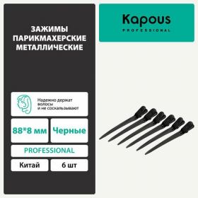 Зажимы Kapous парикмахерские металлические 88*8 мм, 6 шт, черные