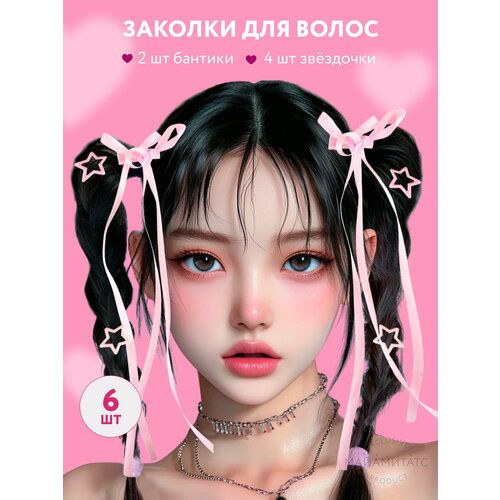 НАЙТИ ВЫГОДНЕЕ - MIAMITATS Бантики заколки маленькие AESTHETIC GIRL Pink star