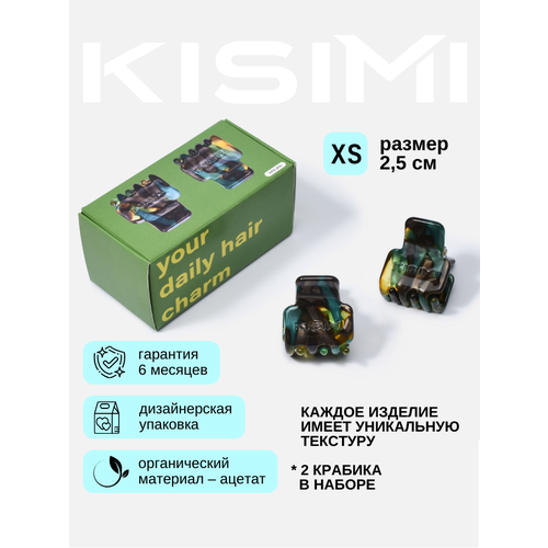 НАЙТИ ВЫГОДНЕЕ - Краб для волос KISIMI, размер XS, цвет: зелёный, коллекция DAILY, 2 шт.