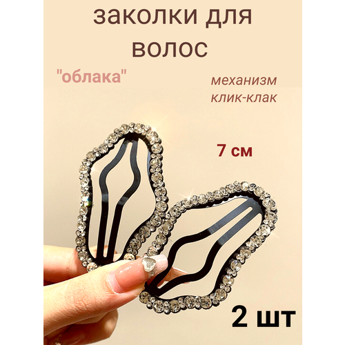 НАЙТИ ВЫГОДНЕЕ - Заколки для волос со стразами механизм клик-клак облака 2 шт