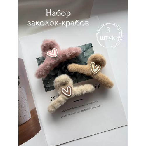 НАЙТИ ВЫГОДНЕЕ - Заколка-краб для волос с искусственным мехом, набор 3 штуки.