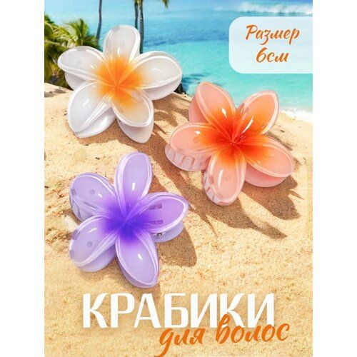 НАЙТИ ВЫГОДНЕЕ - Заколка-Крабик для волос в виде цветка Фаранжипани, 6 см, яркие цвета, 3 шт в комплекте