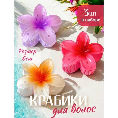 НАЙТИ ВЫГОДНЕЕ - Заколка-Крабик для волос в виде цветка Фаранжипани, 6 см, яркие цвета, 3 шт в комплекте