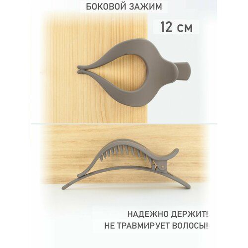 НАЙТИ ВЫГОДНЕЕ - Заколка для волос, боковой зажим (краб), 12х6,5 см, серый, пластик