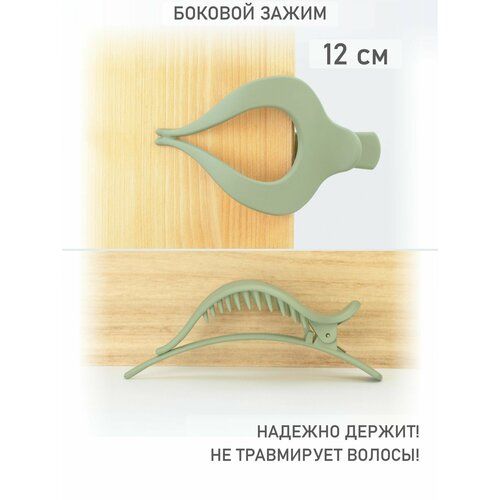 НАЙТИ ВЫГОДНЕЕ - Заколка для волос, боковой зажим (краб), 12х6,5 см, цвет пыльная мята, пластик