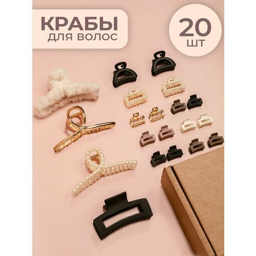 Набор из 20 маленьких и больших красивых и стильных крабиков для волос - идеальный выбор для создания разнообразных причесок. В комплекте вы найдёте большую и маленькие заколки в чёрном матовом цвете из каучука с приятным покрытием. Модели коллекции с крупными и небольшими перламутровыми бусинами выглядят стильно и элегантно. В наборе также присутствует красивый краб из металла в золотом цвете, жемчужные заколки и трендовая меховая пушистая заколка, отлично подходящие для праздничных и вечерних укладок. Металлические и пластиковые зажимы имеют крупную пружинку-фиксатор, надёжно держат любые волосы и подходят для различных типов волос. Все аксессуары для волос выполнены из высококачественных материалов, комфортны в носке и не давят на голову. Универсальный размер делает их подходящими для всех. Этот набор красивых заколок будет отличным подарком для дочери, жены или подруги. Идеальны для укладки в школу, создания красивых причесок на выпускной или свадьбу, а также для повседневного использования. Отличный подарочный набор на 8 марта для женщин.