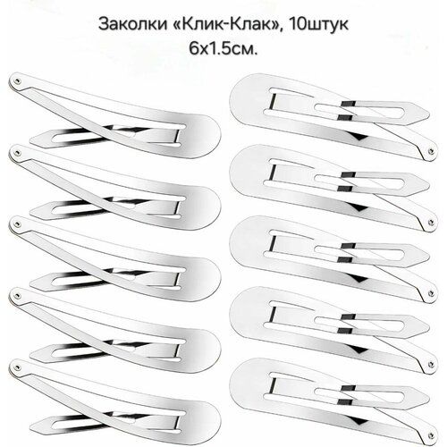 Заколки для волос Клик-клак, комплект 10 штук, размер 6х1.5см, сталь.