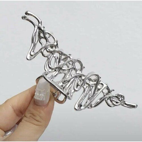 НАЙТИ ВЫГОДНЕЕ - Краб для волос Гимнастическая лента, серебряный/ Заколка 11.5см / Крабик женский металлический большой/ Украшение для волос
