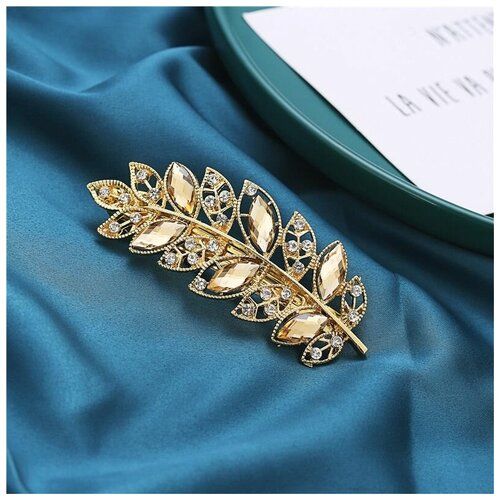 НАЙТИ ВЫГОДНЕЕ - Заколка-автомат для волос металлическая в виде перышка с горным хрусталем и стразами золотая