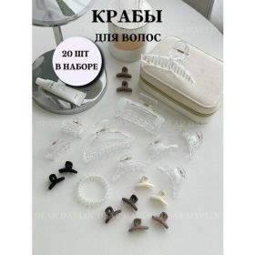 Набор состоит из 20 крабиков разных размеров - среднего и большого. Это позволяет вам выбрать тот вариант, который лучше всего подходит для вашей прически и типа волос.