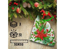 Салфетки бумажные новогодние праздничные декоративные круглые Пуансеттия 3 слоя 12 листов диаметр 32 см 101905808259