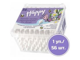 Ватные палочки Bella Baby Happy для детей с экстрактом череды и Д-пантенолом, с ограничителем, 56 шт., контейнер 100442649762