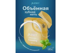 Объемная зубная нить BLESKY Expanding 40 м, вощеная, мятная, с фтором для защиты от кариеса 103746106034