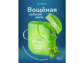 Вощёная зубная нить BLESKY 50 м, мятная, фтор для защиты от кариеса 103746106036
