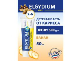 Зубная паста гель для детей от 2 до 6 лет Elgydium Kids защита от кариеса, Эльгидиум, со вкусом банана, Франция, 50 мл 101714306465