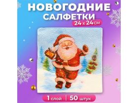 Новогодние салфетки бумажные Мой выбор «Весёлый Дед Мороз» 1 слой, 24х24 см, 50 шт 103656016509