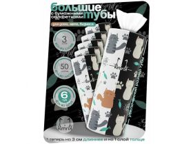 Салфетки бумажные в тубе DOUBLE CAT, 3 слоя, 50 шт х 6 туб 4427147275
