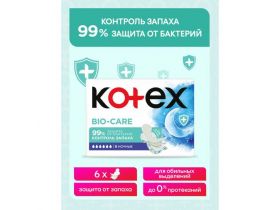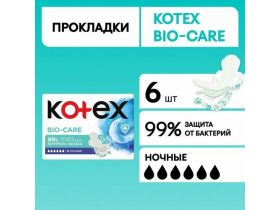 Прокладки женские ночные Kotex Bio-Care гигиенические, 6 шт 103552612958