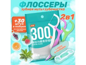 Флоссеры. Зубочистка и зубная нить 2 в 1, антибактериальный эффект, вощеная нить с зубочисткой 103833932047