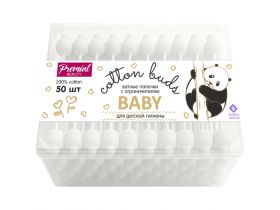 Ватные палочки Premial для детской гигиены с ограничителем, 50 шт., контейнер 204461710