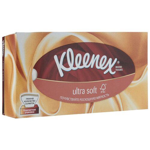 НАЙТИ ВЫГОДНЕЕ - Салфетки Kleenex Ultra soft в картонной коробке, 56 листов, 1 пачка, коричневый