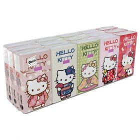 НАЙТИ ВЫГОДНЕЕ - Бумажные платочки Hello Kitty с рисунком, 4 слоя, 15 пачек х 9 листов, 21х21 см