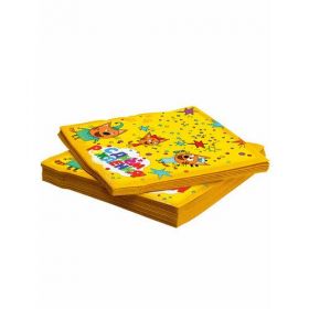 НАЙТИ ВЫГОДНЕЕ - Салфетки бумажные Три Кота, С Днём Рождения, жёлтые, 33 см