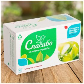 Бумажные салфетки "Спасибо за заботу о природе" изготовлены по передовым технологиям из 100% восстановленной целлюлозы.