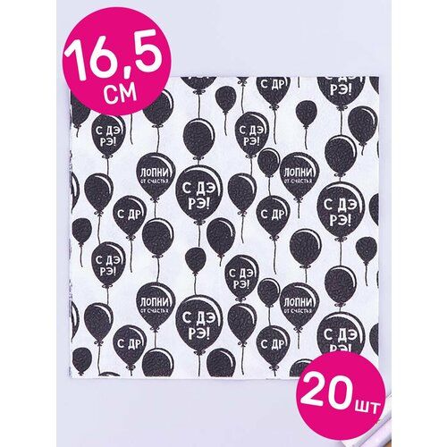 НАЙТИ ВЫГОДНЕЕ - Салфетки бумажные Страна Карнавалия Воздушные шарики, С ДР, Лопни от счастья, черные/белые, 16,5 см, 20 шт.