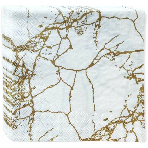 НАЙТИ ВЫГОДНЕЕ - Салфетки бумажные декоративные , Мрамор золотой на белом , сервировочные, 20 листов, 33х33 см.