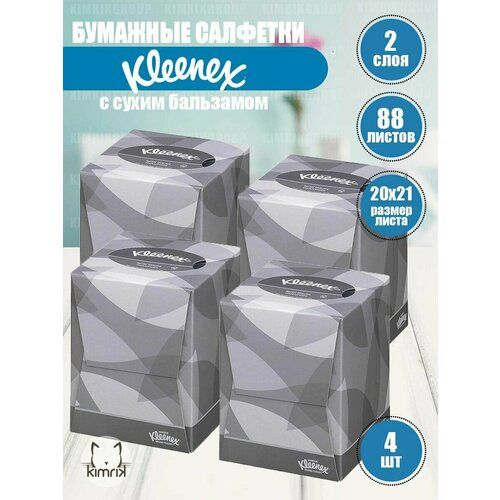 НАЙТИ ВЫГОДНЕЕ - Бумажные салфетки для лица Kleenex, в квадратной коробке, 2-сл, 88 шт х4 уп
