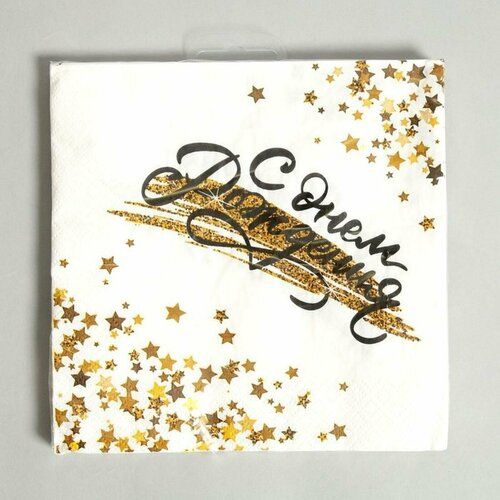 НАЙТИ ВЫГОДНЕЕ - Салфетки бумажные «С днём рождения», (золотой звёздопад), 33 × 33 см, в наборе 12 штук