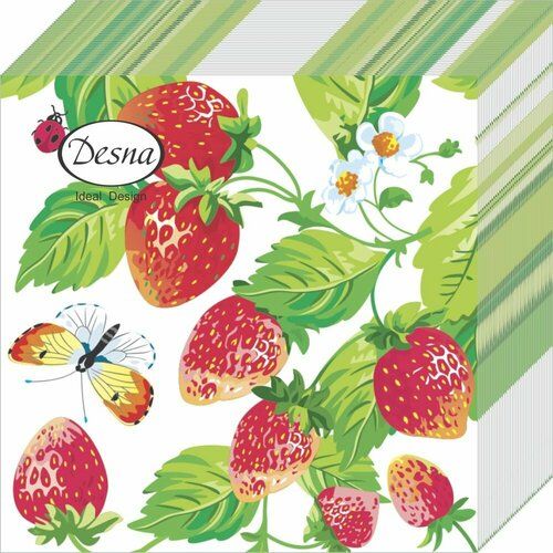 НАЙТИ ВЫГОДНЕЕ - Бумажные салфетки Desna Design Земляника, однослойные, 40 шт, 24х24см