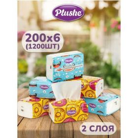 НАЙТИ ВЫГОДНЕЕ - Салфетка косметическая Plushe 2-слойная 200 листов, 6 упаковок