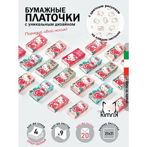НАЙТИ ВЫГОДНЕЕ - Бумажные платочки Hello Kitty с рисунком, 4 слоя, 20 пачек х 9 листов, 21х21 см