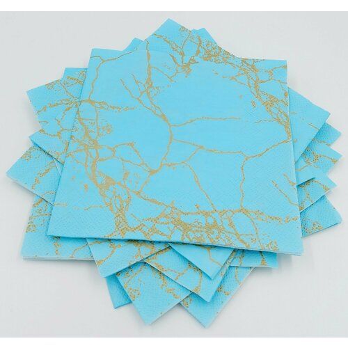 НАЙТИ ВЫГОДНЕЕ - Салфетки бумажные Bouquet Мрамор золотой на тиффани, 3 слоя,33x33, 20 листов