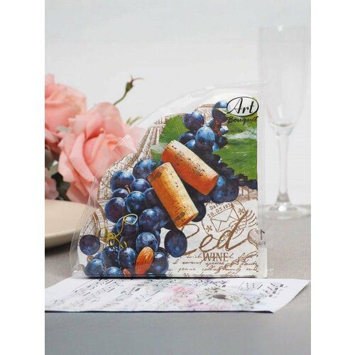 НАЙТИ ВЫГОДНЕЕ - Салфетки бумажные праздничные круглые Виноградный венок 3 слоя 12 листов диаметр 32 см